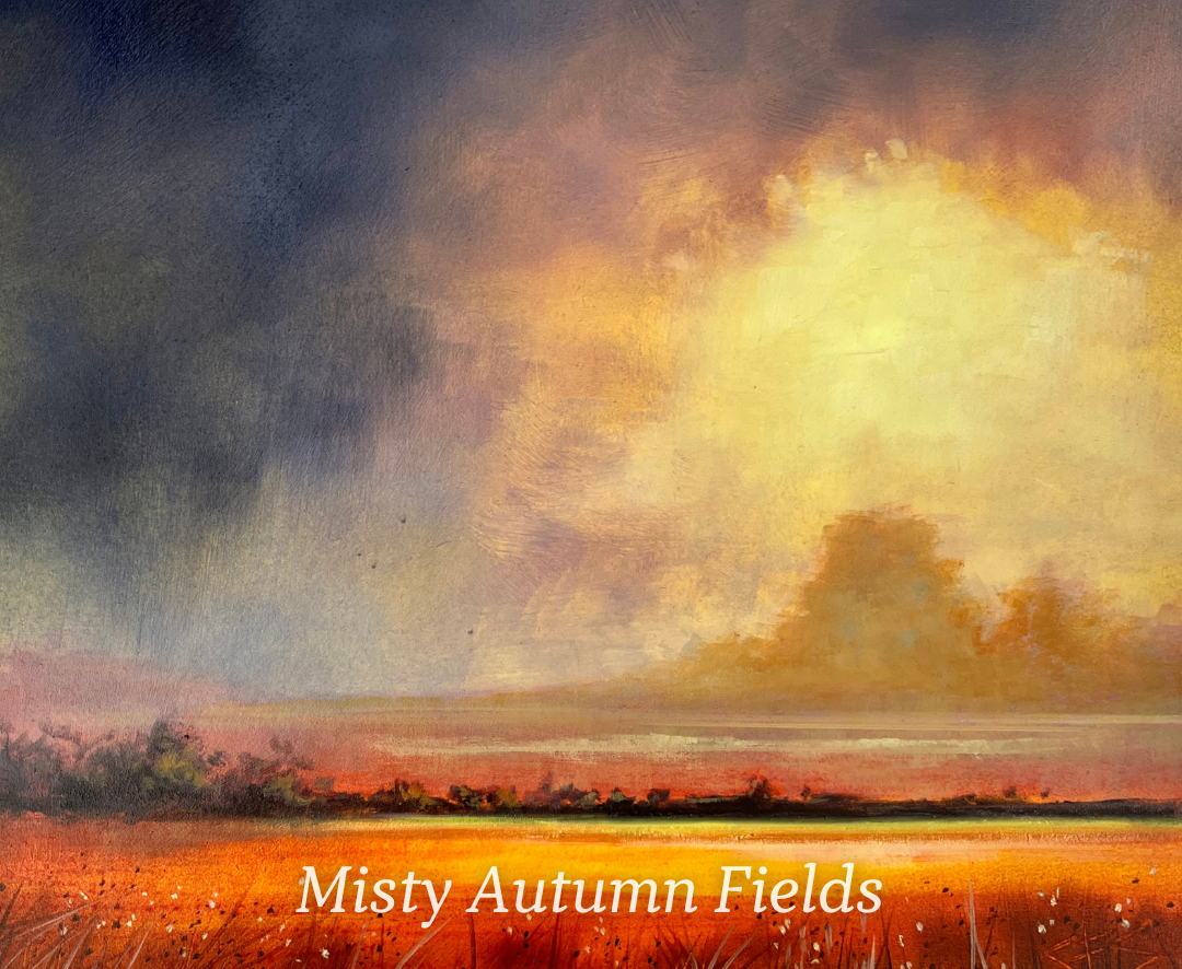 Join me for this step-by-step paint-along video as I guide you through creating an atmospheric autumn landscape using both acrylics and oils. Together, we'll capture that dramatic moment when storm clouds part to reveal golden light breaking through over autumn fields. The kind of scene that stops you in your tracks on a Norfolk country walk. I'll show you how to work with both mediums in one painting, using acrylics for the underpainting and oils for the rich, luminous layers on top. This appr